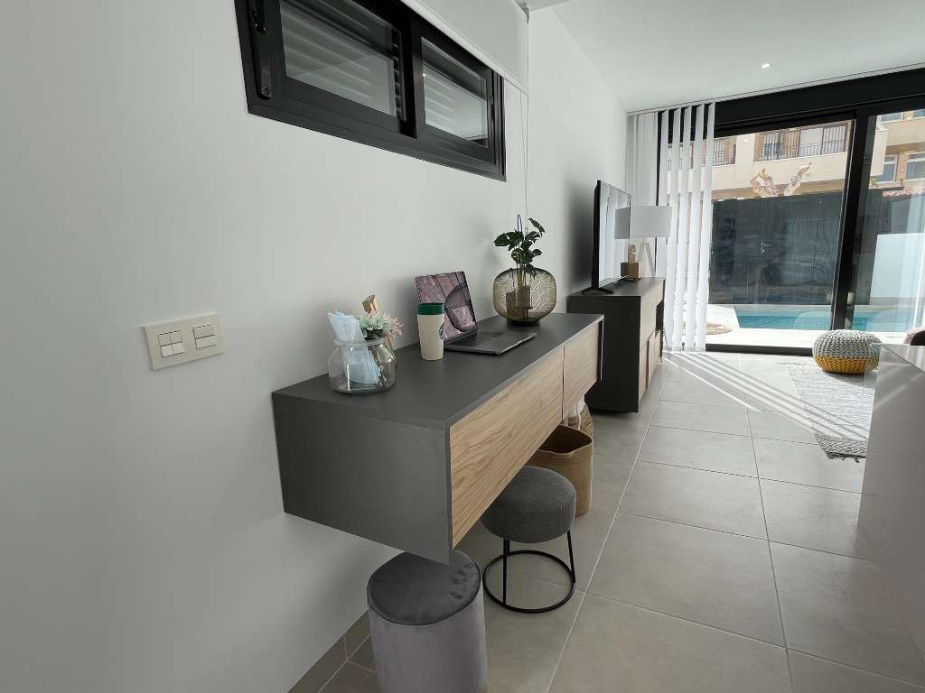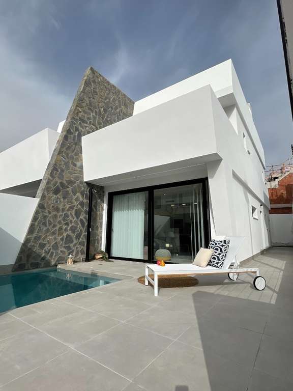 Villas adosadas de obra nueva en venta en San Javier.Nos complace ofrecer nuevas villas adosadas en San Javier, región de la Costa Blanca Sur y cerca del mar Mediterráneo.Hermosa villa de dos niveles con 3 dormitorios, 2 baños, salón luminoso y una cocina. Cada vivienda dispone de solárium, jardín y piscina.Es una zona ideal, cerca del Mar Menor, una pequeña localidad costera, famosa por sus lodos curativos. Mar Menor es una laguna natural de agua salada separada del Mar Mediterráneo. El agua pura del Mar Menor no es profunda y se calienta rápidamente, incluso en invierno la temperatura rara vez desciende por debajo de 18 grados. Aquí encontrará un clima maravilloso y bien desarrollada infraestructura - restaurantes, supermercados, bancos, escuelas, campos de golf y mucho más. En unos pocos minutos, la antigua ciudad de Cartagena y la capital de la región de Murcia.