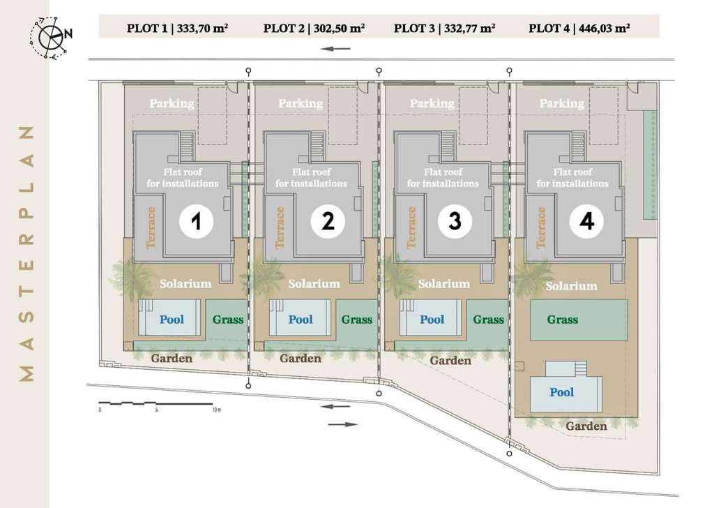 Diseño elegante y distribución funcionalDiseñadas con un estilo arquitectónico moderno y una gran funcionalidad, cada villa se distribuye en dos plantas para maximizar el espacio y la luz natural. Las viviendas incluyen3 amplios dormitorios, uno de ellos en la planta baja3 baños completamente equipados, todos en suiteJardín privado y piscinaTerraza en la primera planta ideal para tomar el sol y relajarseAparcamiento privado con puerta motorizada