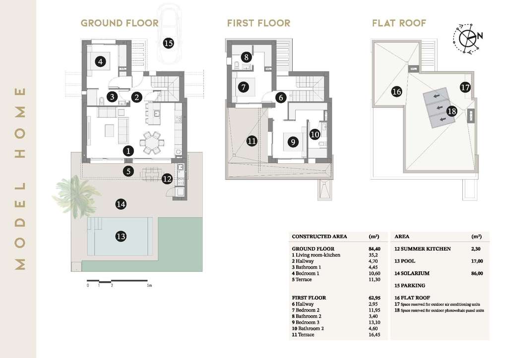Diseñadas con un estilo arquitectónico moderno y una gran funcionalidad, cada villa se distribuye en dos plantas para maximizar el espacio y la luz natural. Las viviendas incluyen