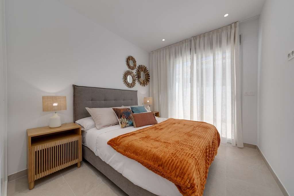 Estos Bungalows de Planta Baja, idealmente ubicados en San Pedro Del Pinatar, son parte de un nuevo proyecto que constará de 6 Bungalows, incluyendo 3 bungalows de planta baja con 2 dormitorios, 2 baños, jardín y patio y 3 bungalows en el primer piso, también de 2 dormitorios, 2 baños, terraza y solarium con piscina. Esta referencia actual se refiere a los bungalows de planta baja dentro de este proyecto, cuya entrega está prevista para el primer trimestre de 2025. Estos bungalows de planta baja se entregarán con una cocina bellamente amueblada con los siguientes electrodomésticos de la marca BOSCH incluidos: (horno, microondas, frigorífico, placa de inducción, lavavajillas y lavadora). Además, los baños estarán bellamente terminados y amueblados con mamparas de ducha y calefacción por suelo radiante también incluido en el precio. La casa también estará equipada con aire acondicionado por conducción y persianas eléctricas, para que puedas permanecer cómodamente en tu hogar. Dentro de este proyecto, 2 bungalows de planta baja tendrán un jardín delantero con espacio de estacionamiento para un auto y en la parte trasera de la casa habrá un patio de 15.50 m2 el cual tendrá vista desde ambos dormitorios. Uno de estos tres bungalows de planta baja tendrá un jardín algo más grande de 54,05m2 y una terraza de 12,40m2 y tendrá la suerte de que habrá una piscina de 9,50m2, y también habrá una plaza de aparcamiento en la parcela para una auto.