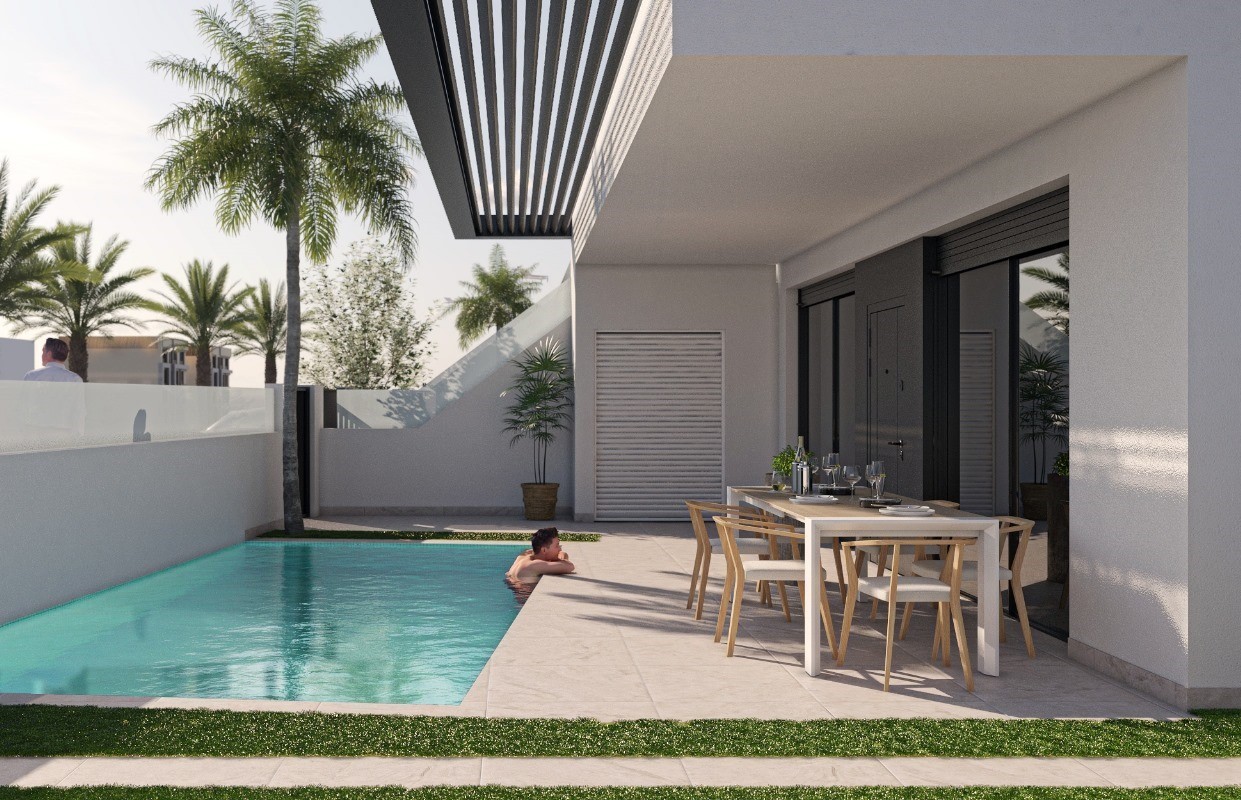 Puede elegir entre dos tipos de viviendas:- Pisos en planta bajaCon amplias terrazas privadas, piscina privada, aparcamiento privado y trastero en la parcela.- Pisos en planta alta con azoteaCon balcón privado, azotea con piscina privada, aseo, cocina exterior, barbacoa eléctrica, ducha de agua caliente y una elegante pérgola metálica para disfrutar de sombra y comodidad durante los calurosos meses de verano. Hay aparcamiento y trastero en el complejo.