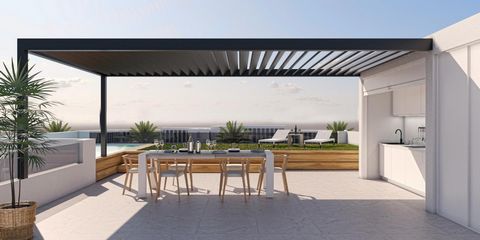 Discover this exclusive residential complex in San Pedro del Pinatar, ideally located on the sun-drenched Costa Cálida. These modern apartments combine sleek design with high-quality comfort and are situated just minutes from the town center, shops, restaurants, and the beautiful beaches of both the Mediterranean Sea and the Mar Menor. The apartments feature 3 bedrooms and 2 bathrooms and are available in two stylish models: a ground-floor apartment with a spacious terrace and private pool, or a penthouse with a large rooftop terrace, summer kitchen, barbecue, and its own pool. Thanks to the open layout, the living room, dining area, and kitchen flow seamlessly into one another, while large windows provide plenty of natural light and a pleasant sense of space. The master bedroom includes an en-suite bathroom for added privacy and comfort. Enjoy Mediterranean outdoor living on your own terrace or rooftop. Relax in the private pool, dine al fresco, or savor long summer evenings with family and friends in a stylish setting. The location is excellent: just 2 km from the beaches and with all amenities within walking distance. Via the N-332 and AP-7, you can quickly reach cities such as Murcia, Cartagena, and the popular resorts of the Costa Blanca, including Orihuela Costa, Torrevieja, and Alicante. Each apartment is equipped with the latest technology and high-quality finishes, including fully installed air conditioning with Airzones, underfloor heating in the bathrooms, appliances, LED lighting inside and out, and practical laundry facilities. Ground-floor apartments have on-site parking with an automatic gate; penthouses have a private parking space on the communal grounds. Experience the perfect balance between luxury, comfort, and Mediterranean lifestyle—contact us today to discover your dream apartment in San Pedro del Pinatar.