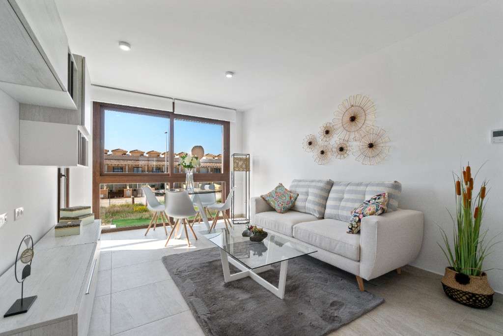 Apartamentos de obra nueva en venta en San Pedro del PinatarOfrecemos a la venta apartamentos de planta alta de nueva construcción ubicados en complejo residencial con piscina. Las viviendas cuentan con 2 dormitorios, 2 baños, salón, cocina, terraza y solárium privado de 52 metros cuadrados.San Pedro del Pinatar es un pequeño pueblo español en el singular paraje natural del Mar Menor, que traducido del español significa "pequeño mar". El Mar Menor está separado del Mar Mediterráneo por la división de arena, de una longitud de 12 km, creando un microclima especial. Los centros de spa y tratamientos del Mar Menor son ampliamente conocidos en la región de la Costa Blanca y gozan de gran popularidad entre los turistas.En 15-20 minutos se puede llegar al aeropuerto de San Javier, así como a los principales centros culturales e históricos como Murcia y Cartagena.