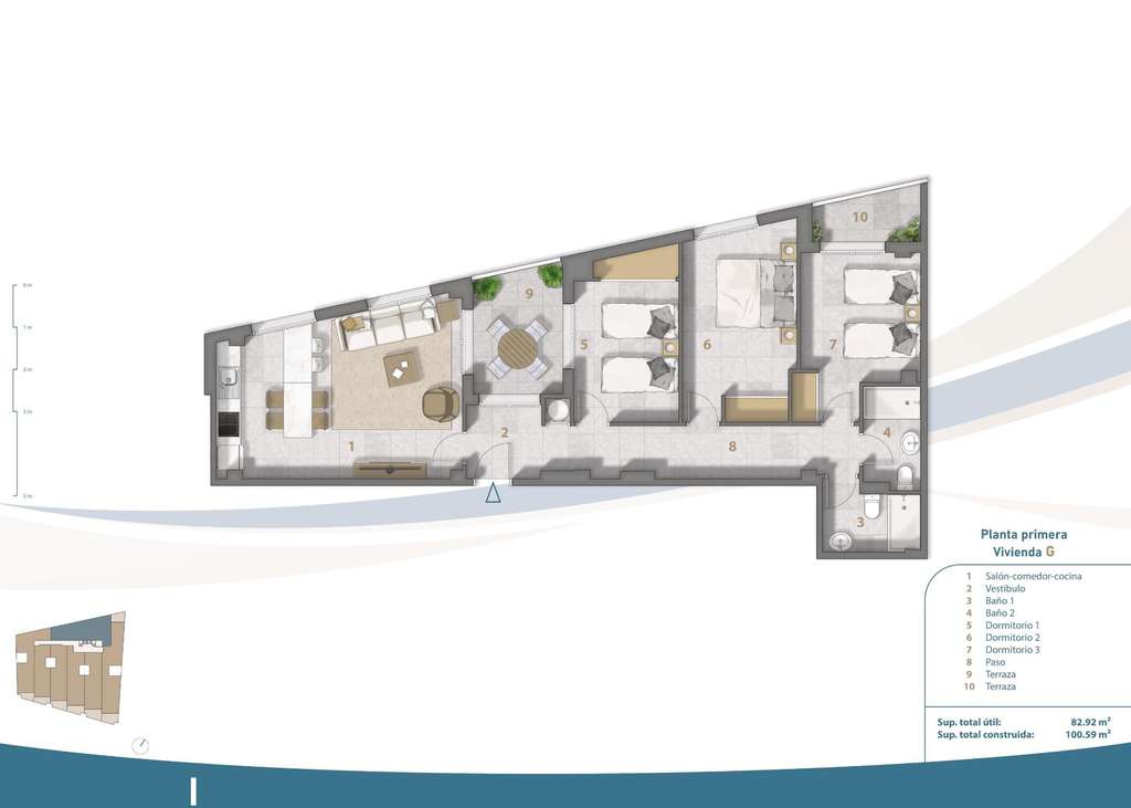 Seis áticos de la 2ª planta tienen una característica única: acceso directo a su solarium privado a través de sus terrazas.