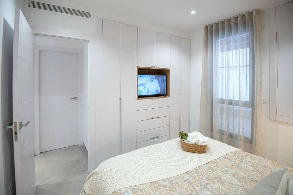 Apartamentos y áticos de 2 y 3 dormitorios, 2 baños, con cocina americana totalmente equipada con electrodomésticos - Bosch o Siemens, sala de estar, amplias terrazas, armarios empotrados, baños totalmente equipados con calefacción por suelo radiante, aire acondicionado, persianas eléctricas, trastero cerrado, plaza de aparcamiento con toma de 16 Amp para coches eléctricos.