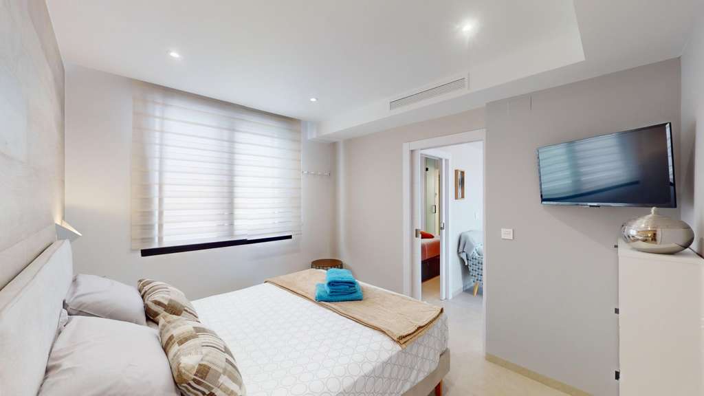 El ático cuenta con tres amplios dormitorios ( con capacidad para 7 personas , ¡ideal para alquilar!) y dos modernos baños con calefacción por suelo radiante, ducha a ras de suelo y grifería de alta calidad. Todos los dormitorios cuentan con armarios empotrados, conexión para TV y persianas para mayor comodidad y privacidad.