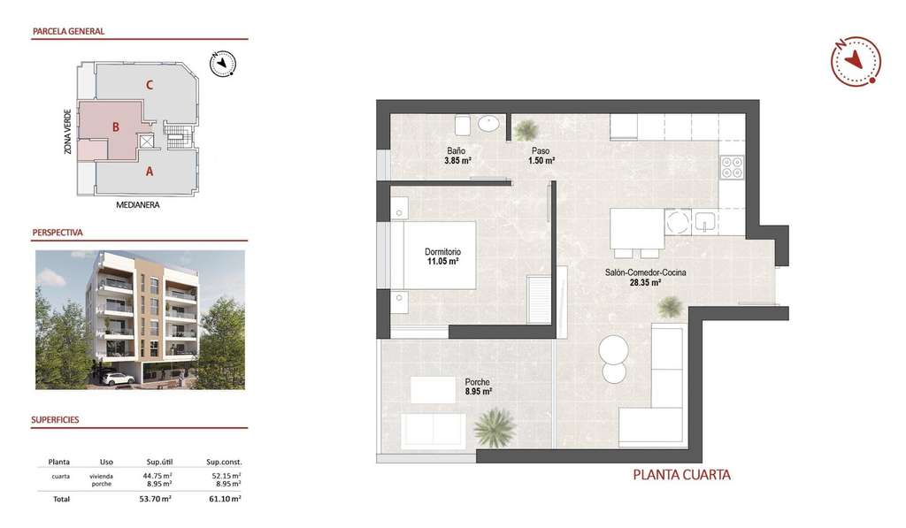 Todos los apartamentos incluyen un trastero privado en la azotea. Algunas unidades incluyen una plaza de aparcamiento y hay plazas de aparcamiento adicionales disponibles como opción.