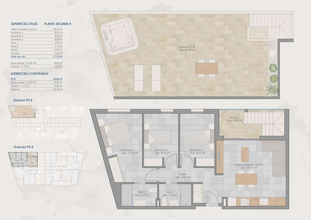 Apartamentos de nueva construcción en venta en Lo Pagan (San Pedro del Pinatar) cerca de la playa Vida mediterránea moderna en Lo Pagan Descubra estos elegantes apartamentos de nueva construcción en venta en Lo Pagan, una encantadora zona costera dentro de San Pedro del Pinatar, en la hermosa Costa Cálida. Situada en el conocido barrio de Los Cuarteros, esta promoción residencial ofrece un estilo de vida privilegiado a solo 500 metros de la playa y cerca de todos los servicios esenciales, restaurantes, tiendas y zonas de ocio. Lo Pagan es famosa por su relajado ambiente costero, las tranquilas aguas del Mar Menor y más de 300 días de sol al año. La zona combina el encanto tradicional español con las comodidades modernas, lo que la convierte en un destino ideal tanto para vivir como para pasar las vacaciones. Apartamentos contemporáneos con terrazas y soláriums privados La promoción ofrece una selección de apartamentos en planta baja y planta intermedia con amplias terrazas, así como exclusivos áticos con soláriums privados en la azotea. Los soláriums incluyen una pérgola y una zona de barbacoa, lo que crea el entorno perfecto para comer al aire libre y relajarse bajo el sol del Mediterráneo. Cada propiedad ha sido diseñada para combinar la arquitectura contemporánea con el cálido estilo mediterráneo. La cocina abierta se integra a la perfección con el salón y el comedor, creando espacios luminosos y confortables. Las amplias terrazas amplían las zonas interiores y son el lugar perfecto para desayunar al aire libre o celebrar reuniones por la noche. Los dormitorios cuentan con armarios empotrados y los modernos cuartos de baño están totalmente equipados, ofreciendo comodidad y elegantes acabados en toda la vivienda. Características de calidad e instalaciones comunitarias Estas viviendas se han construido prestando atención a los detalles e incluyen especificaciones de alta calidad para garantizar el confort y la eficiencia. Cocina totalmente amueblada y equipada con electrodomésticos Baños completamente equipados con acabados modernos Aire acondicionado por conductos totalmente instalado Plaza de aparcamiento privada y trastero incluidos en cada propiedad Los residentes también pueden disfrutar de excelentes instalaciones comunitarias, como una piscina rodeada de zonas de relax y un gimnasio totalmente equipado, ideal para mantener un estilo de vida activo durante todo el año. Excelente ubicación en la Costa Cálida Esta promoción goza de una ubicación estratégica cerca de playas, campos de golf y destinos clave a lo largo de la costa. Playa de Villananitos 0,5 km Real Club Náutico de Lo Pagán 0,5 km Lo Romero Golf 10 km Aeropuerto Internacional de Murcia 40 km Cartagena 35 km Las playas cercanas del Mar Menor, como la Playa de La Puntica, son conocidas por su arena fina y sus aguas tranquilas, ideales para nadar, navegar y practicar deportes acuáticos. Su nueva casa junto al mar le espera Disfrute del sol, las playas y un vibrante estilo de vida costero en una de las zonas más codiciadas de la Costa Cálida. Póngase en contacto con nosotros hoy mismo para obtener más información sobre estos apartamentos de nueva construcción en Lo Pagán y asegúrese su lugar junto al mar. 425