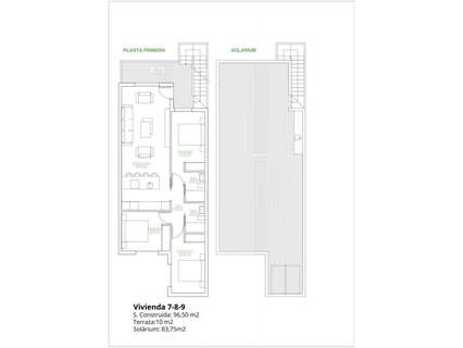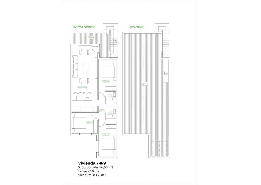 Solárium privado en las viviendas de planta alta, con cocina de verano