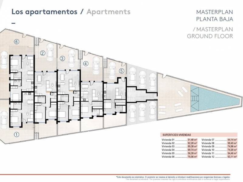 El proyecto ofrece apartamentos de 1 y 2 dormitorios en diferentes configuraciones para adaptarse a diversos estilos de vida. Las viviendas de planta baja cuentan con amplias terrazas privadas, aparcamiento dentro de la parcela y acceso directo a la piscina comunitaria. Los apartamentos de la última planta incluyen soláriums privados en la azotea, ideales para disfrutar del sol y de la vida al aire libre.