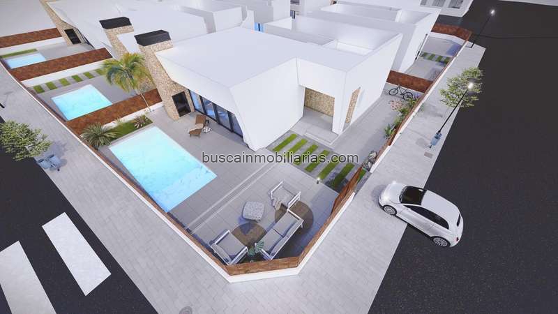 Estas impresionantes villas de una sola planta con generosas parcelas ubicadas en una zona residencial junto a un parque en San Pedro del Pinatar.