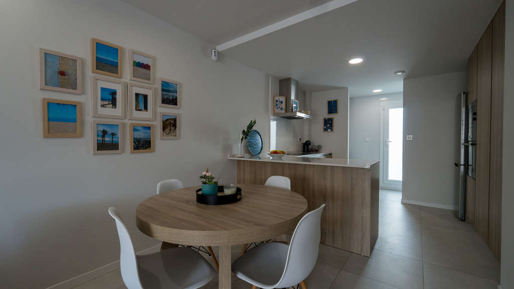 Casa adosada prácticamente a estrenar en venta. Preciosa y moderna casa en perfecto estado en San Pedro del Pinatar. Se vende con un bonito mobiliario moderno. Esta moderna casa, construida en 2019, tiene 205 m². Es una casa adosada continua con un jardín de baldosas delante y detrás. La casa cuenta con cuatro amplios dormitorios (uno de ellos en la planta baja), tres baños completos, un luminoso salón con acceso al amplio jardín y una cocina abierta con amplio espacio de trabajo. Dispone de aparcamiento en un garaje subterráneo. La distribución es luminosa y abierta, con abundante luz natural. Hay un jardín delante y detrás de la casa, una terraza desde el dormitorio en la segunda planta y una amplia y soleada azotea. La azotea ofrece sol todo el día, pero también una gran pérgola que se puede extender para dar sombra en los días más calurosos. También tiene vistas a la piscina y al jardín comunitarios. La casa cuenta con aire acondicionado frío-calor integrado en todas las estancias y es ideal como residencia durante todo el año. La casa se vende con un bonito mobiliario. La propiedad se encuentra en una urbanización segura y cerrada con una estupenda piscina comunitaria, perfecta para relajarse y disfrutar del cálido clima. Varios vecinos son escandinavos. La playa más cercana está a unos 1,3 km de la casa, y todo lo necesario para unas vacaciones relajantes también está a poca distancia a pie. Puede dejar su coche en el garaje durante toda su estancia. SAN PEDRO DEL PINATAR; San Pedro del Pinatar es un pequeño y acogedor pueblo costero de la región de Murcia. Excelente ubicación en el Mar Menor, un popular destino turístico con playas, puerto pesquero y reservas naturales. El pueblo cuenta con baños de agua salada con lodos terapéuticos, conocidos por sus beneficios para la salud. Hay varios restaurantes y tiendas, además de una animada actividad pesquera. En la playa, se pueden practicar diversas actividades como deportes acuáticos, buceo, vela y surf. Si desea ir de compras a Zenia Boulevard por un día, está a solo 10 minutos en coche. El aeropuerto de Alicante está a unos 50 minutos en coche. Esta atractiva propiedad es ideal para quienes buscan una ubicación tranquila con buenas conexiones y servicios cercanos. Para obtener más información o concertar una visita, comuníquese con Feriebolig Utland hoy mismo.