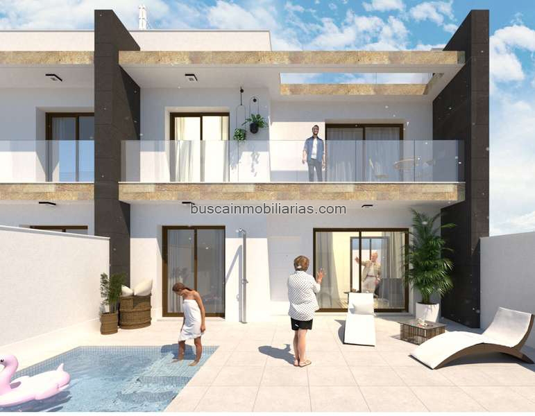Descubra su hogar adosado de ensueño con Vincent Real Estate, donde la comodidad se encuentra con la conveniencia en la encantadora zona de San Pedro del Pinatar. Estas impresionantes propiedades ofrecen una combinación perfecta de estilo y funcionalidad, diseñadas para satisfacer todas sus necesidades de vivienda. Con tres amplios dormitorios y tres baños, estas casas ofrecen un amplio espacio para familias o para aquellos que disfrutan de entretener.Cada propiedad cuenta con una piscina privada, invitándolo a disfrutar de refrescantes baños en la privacidad de su propio hogar. La inclusión de un solárium proporciona un lugar ideal para tomar el sol o para organizar reuniones al aire libre. También encontrará un jardín bellamente ajardinado, que añade un toque de naturaleza a su entorno de vida.En el interior, las propiedades cuentan con acabados de alta calidad, como suelos de porcelanato y armarios empotrados, asegurando que cada detalle esté elaborado con esmero. El sistema de aire acondicionado mantiene su hogar cómodo durante todo el año, mientras que el video portero añade una capa adicional de seguridad.Para aquellos que aman cocinar, la cocina totalmente equipada con electrodomésticos modernos hace que la preparación de comidas sea un placer. La terraza extiende su espacio vital al aire libre, perfecta para cenar al aire libre o simplemente relajarse con un buen libro.A pesar de estar ubicadas a solo 2,0 km del mar, estas propiedades ofrecen tranquilidad lejos de la bulliciosa playa, permitiéndole disfrutar de paz y privacidad mientras sigue estando cerca de la costa. La conveniencia continúa con fácil acceso al aeropuerto, a solo 47,0 km de distancia, lo que hace que viajar sea muy sencillo.Si bien no se incluyen comodidades comunitarias como piscinas o gimnasios, la presencia de áreas ajardinadas ofrece un entorno sereno para relajarse y disfrutar de la naturaleza. Además, cada hogar cuenta con un garaje, que proporciona estacionamiento seguro y espacio adicional de almacenamiento.Elija Vincent Real Estate para su próxima compra de propiedad y experimente un servicio inigualable adaptado a sus necesidades. Nuestra experiencia en el mercado inmobiliario asegura que podamos guiarlo en cada paso del camino para encontrar el hogar perfecto que se adapte a su estilo de vida. Ya sea que esté buscando una residencia permanente o un refugio vacacional, estas propiedades en San Pedro del Pinatar ofrecen una oportunidad excepcional para vivir con comodidad y estilo.