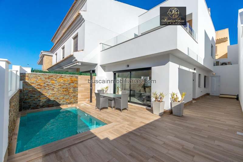 Aproveche esta oportunidad única: compre su nueva vivienda antes de JULIO y reciba un bono exclusivo de 3.000 € para mobiliario, aire acondicionado o incluso nosotros nos hacemos cargo del coste de sus billetes de avión ✈️. Estas modernas villas se encuentran a solo 3,5 km de las hermosas playas del Mar Menor -️ y ofrecen una combinación incomparable entre lujo y comodidad. Cada villa cuenta con un diseño contemporáneo que maximiza la luz natural ☀️, distribuida en dos plantas con cocina abierta conectada al salón-comedor -️. Disfrute también desde su jardín privado -- donde le espera una espléndida piscina - ideal para relajarse bajo el sol mediterráneo. Situadas cerca del bullicio del centro urbano - pero lo suficientemente alejadas como para disfrutar tranquilidad total; estas propiedades son perfectas tanto como residencia permanente o inversión inteligente -- ¡No deje pasar esta ocasión! Contáctenos hoy mismo -.