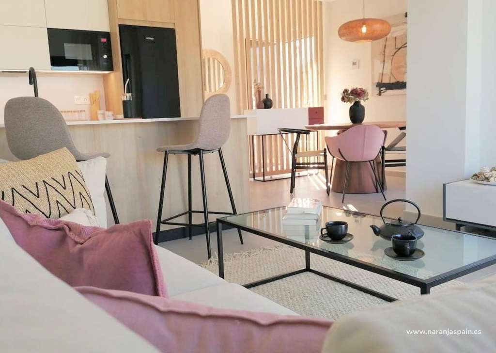 Consta de 3 dormitorios con armarios empotrados, totalmente amueblado, 2 baños totalmente equipados, cocina con todos los electrodomésticos, salón con muebles tapizados, patio privado y piscina de 15m².