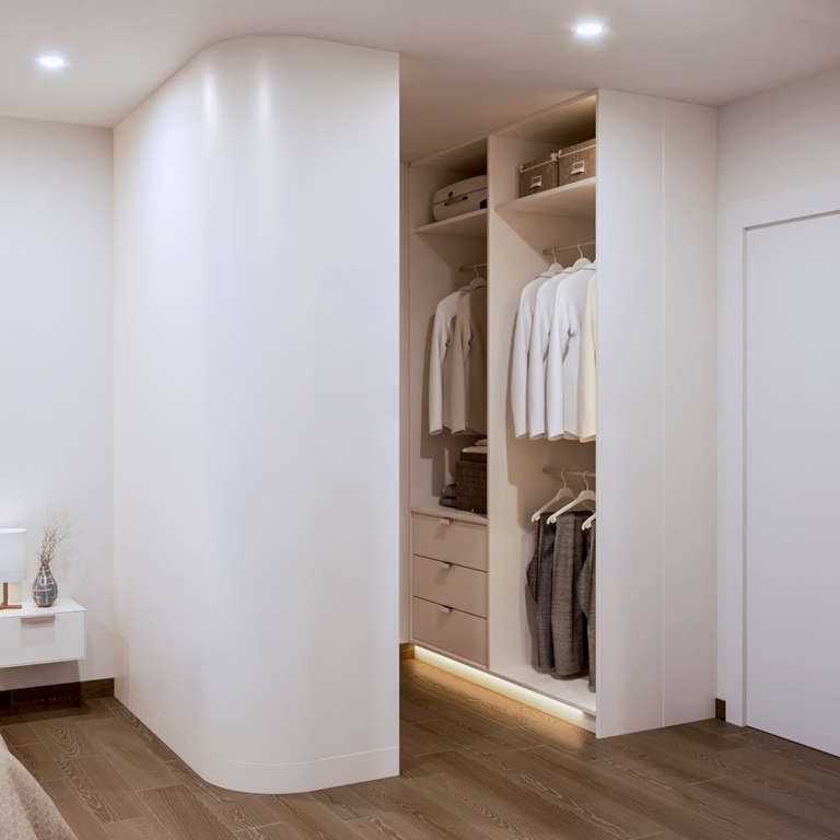 Los dormitorios contarán con armarios empotrados con acabado de lujo, incluyendo cajones, estanterías y percheros y estas villas contarán con puntos de TV en todos los dormitorios. Los modernos baños estarán equipados con lavabos de porcelana, elegantes muebles de baño y espejos con iluminación LED integrada. Cada baño dispondrá de una cabina de ducha con cabezal de ducha tipo lluvia, plato de ducha antideslizante y mamparas de ducha de cristal. Para un óptimo confort de vida, estas villas contarán con preinstalación de aire acondicionado por conductos y también estarán equipadas con un sistema de videoportero.