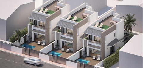 Descubra el epítome de la vida de lujo en San Pedro del Pinatar con estas excepcionales villas de nueva construcción. Cada villa ha sido cuidadosamente diseñada con una meticulosa atención al detalle, ofreciendo interiores espaciosos e iluminados por el sol que combinan estilo y confort. Estas villas cuentan con una sala de estar de planta abierta, comedor y cocina, creando un flujo continuo en todo el espacio de vida principal. Con 3 dormitorios, incluyendo una suite principal con vestidor y baño privado, estas casas son perfectas para aquellos que buscan elegancia y funcionalidad.