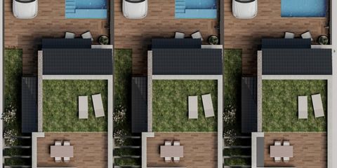 Cada villa está situada en una parcela privada de aproximadamente 200 metros cuadrados, lo que proporciona un amplio espacio para la vida al aire libre y la relajación. La propiedad incluye una piscina privada, perfecta para disfrutar de los cálidos días mediterráneos, y una zona de aparcamiento designada. Un amplio solárium privado ofrece un hermoso espacio para tomar el sol, entretenerse o simplemente disfrutar de la tranquilidad del entorno. Estas villas ofrecen un estilo de vida de alta calidad con servicios de primera calidad y comodidades modernas en una de las zonas costeras más deseadas de España.