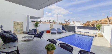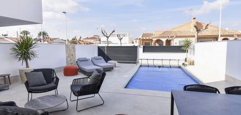 Bienvenido a la segunda fase de una exclusiva promoción en San Pedro del Pinatar, donde la modernidad se une a la funcionalidad. Estas 12 villas adosadas están construidas con un diseño minimalista y acabados de alta calidad, ofreciendo una experiencia de vida sofisticada y elegante. Cada villa cuenta con 3 amplios dormitorios, 3 baños y una piscina privada, junto con terrazas y un jardín privado. Es el santuario perfecto para quienes buscan tranquilidad, privacidad y un confort sin igual.