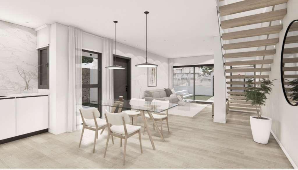 Villas de obra nueva en venta en San Pedro del PinatarNos complace ofrecer nuevas villas en San Pedro del Pinatar, región de la Costa Blanca Sur y cerca del mar Mediterráneo.Hermosas villas de 2 niveles con 3 dormitorios, 3 baños, una sala de estar luminosa y una cocina. Cada vivienda dispone de 3 terrazas pequeñas, solárium, bonita zona ajardinada y piscina privada.San Pedro del Pinatar es un pequeño pueblo español en el singular paraje natural del Mar Menor, que traducido del español significa "pequeño mar". El Mar Menor está separado del Mar Mediterráneo por la división de arena, de una longitud de 12 km, creando un microclima especial. Los centros de spa y tratamientos del Mar Menor son ampliamente conocidos en la región de la Costa Blanca y gozan de gran popularidad entre los turistas.En 15-20 minutos se puede llegar al aeropuerto de San Javier, así como a los principales centros culturales e históricos como Murcia y Cartagena.