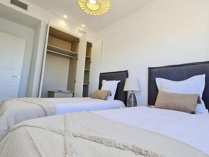Cocina totalmente amueblada y equipada con horno y microondas en columna, lavavajillas y frigorífico empotrados, vitrocerámica y campana extractora.