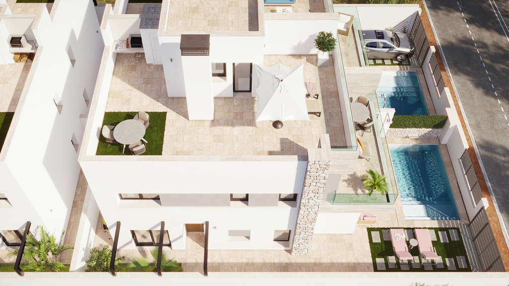 Un proyecto de arquitectura icónica, se ubica junto al Mar Mediterráneo, cerca de un destacado campo de golf en la Costa Cálida. Ofrece un entorno único para disfrutar del deporte y la naturaleza, con más de 300 días de sol al año y una temperatura media de 20°C. Además, está convenientemente situado a 30 minutos del aeropuerto de Murcia y a 40 minutos del aeropuerto de Alicante, lo que lo convierte en un lugar excepcional para vivir.EXTERIORESEs un innovador desarrollo de cuatro espaciosas casas adosadas con hasta 170 m² construidos, piscina privada y jardín. Su destacada ubicación junto a la playa, a solo 3 km del paseo marítimo de Puerto San Pedro del Pinatar y a pocos pasos de la playa de La Llana, lo convierte en uno de los proyectos más deseables en La Costa Cálida en la actualidad.INTERIORESPuede elegir propiedades de tres habitaciones, estacionamiento al aire libre, tres baños con luz natural y azotea. Disfrute de las mejores calidades y equipamiento de las marcas más prestigiosas, y aproveche numerosas posibilidades de personalización en materiales y características, así como una alta flexibilidad en la arquitectura interior.SAN PEDRO DEL PINATARSan Pedro del Pinatar, en la región de Murcia, es conocido por su parque natural, las Salinas y Arenales de San Pedro. Este destino costero atrae a turistas por sus extensas playas, aguas terapéuticas de barro y su biodiversidad en las salinas. El turismo en San Pedro del Pinatar se centra en sus playas, las terapias de barro y el avistamiento de aves en el parque natural. Además, su paseo marítimo y su oferta gastronómica son puntos destacados para los visitantes. El estilo de vida en San Pedro del Pinatar es tranquilo y ligado al mar. Los residentes disfrutan de una vida relajada, valorando las propiedades terapéuticas de las salinas y participando en actividades acuáticas. San Pedro del Pinatar ofrece un ambiente costero y natural para aquellos que buscan disfrutar de la playa, la naturaleza y las terapias de barro, creando un destino ideal para relajarse y disfrutar de la costa del Mar Menor.
