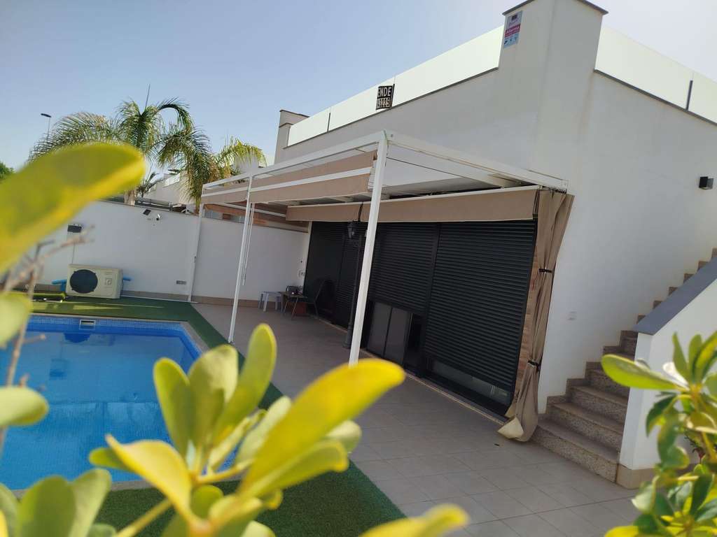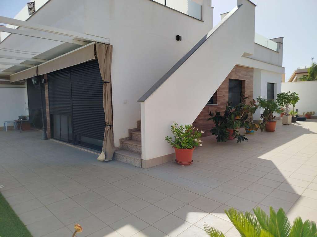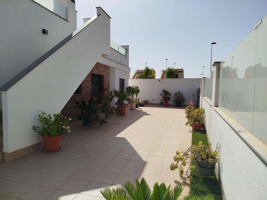 This stunning villa, located in the prestigious Lo Pagán area of San Pedro del Pinatar, offers a luxurious coastal lifestyle in one of the most sought-after regions. Spanning 113m² of elegant living space on a generous 270m² plot, this villa blends modern design with comfort. Upon entering, you are greeted by a spacious entrance hall featuring a built-in wardrobe for practical storage. The heart of the home is the expansive living room, seamlessly integrated with a contemporary open kitchen, perfect for entertaining or relaxing in style. The villa offers two well-appointed bedrooms and two sleek, modern bathrooms, providing ample space and privacy. The outdoor space is equally impressive, offering potential for a private garden, outdoor dining area, or pool, making it ideal for enjoying the Mediterranean climate year-round. With its prime location near beautiful beaches, amenities, and the natural wonders of San Pedro del Pinatar, this villa is a perfect retreat for those seeking comfort, elegance, and tranquility.
