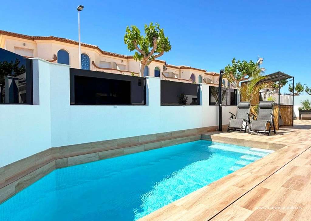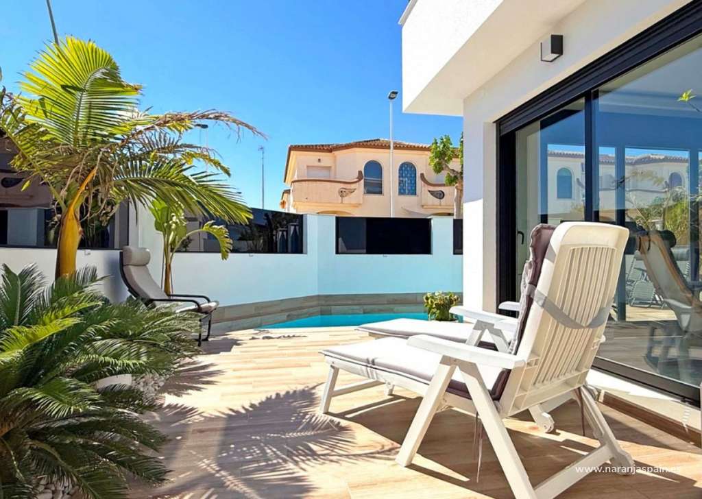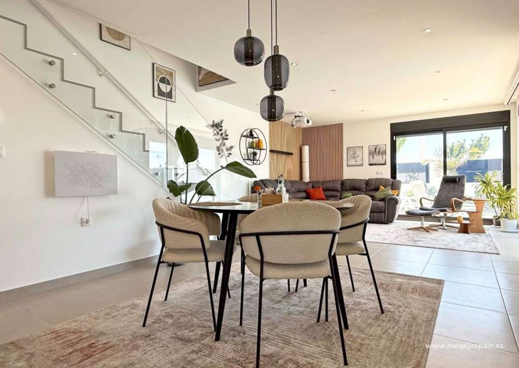 Descubre esta elegante villa independiente orientada al sur, construida en 2024 y en estado impecable. Situada en el corazón de San Pedro del Pinatar, esta vivienda de dos dormitorios y dos baños destaca por sus acabados de alta calidad y numerosos extras.