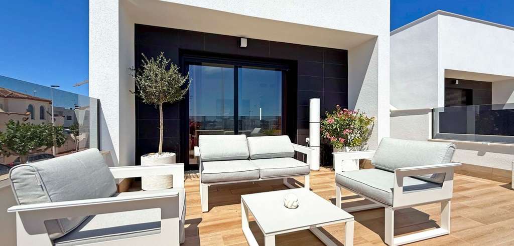 Descubre esta elegante villa independiente orientada al sur, construida en 2024 y en estado impecable. Situada en el corazón de San Pedro del Pinatar, esta vivienda de dos dormitorios y dos baños destaca por sus acabados de alta calidad y numerosos extras.