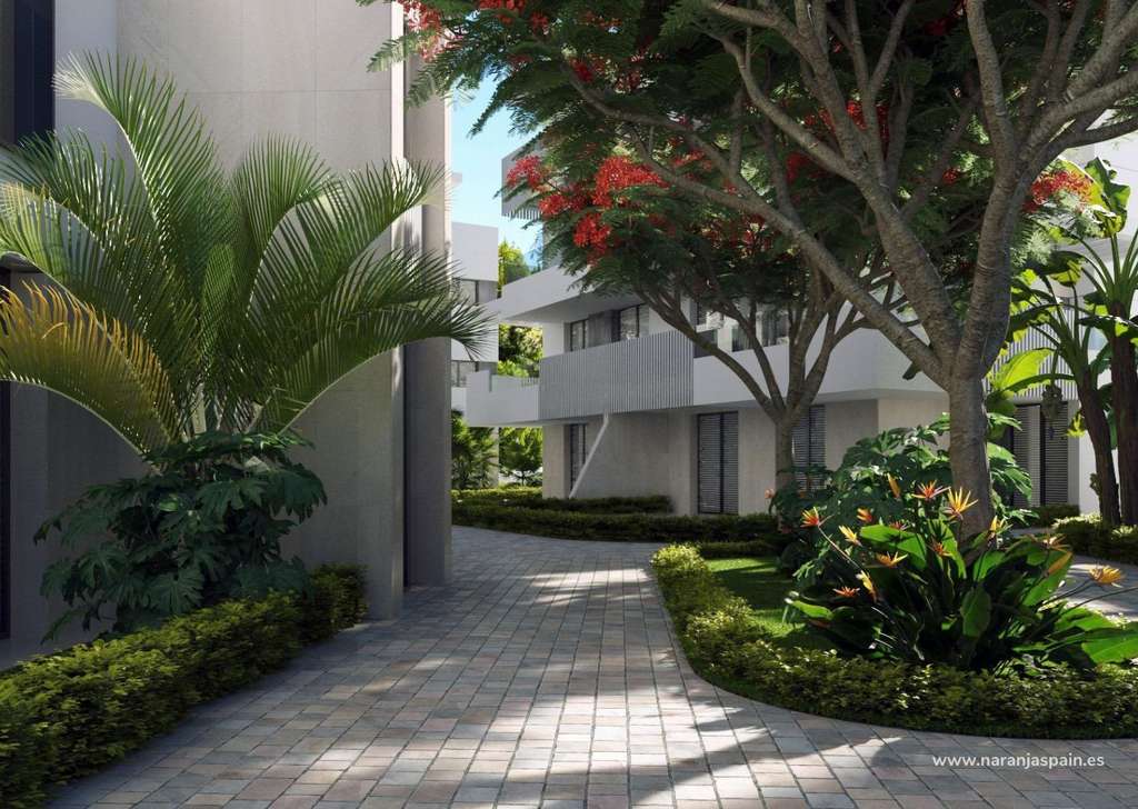 Apartamentos en planta baja con jardín privado, apartamentos en planta alta con solarium privado.