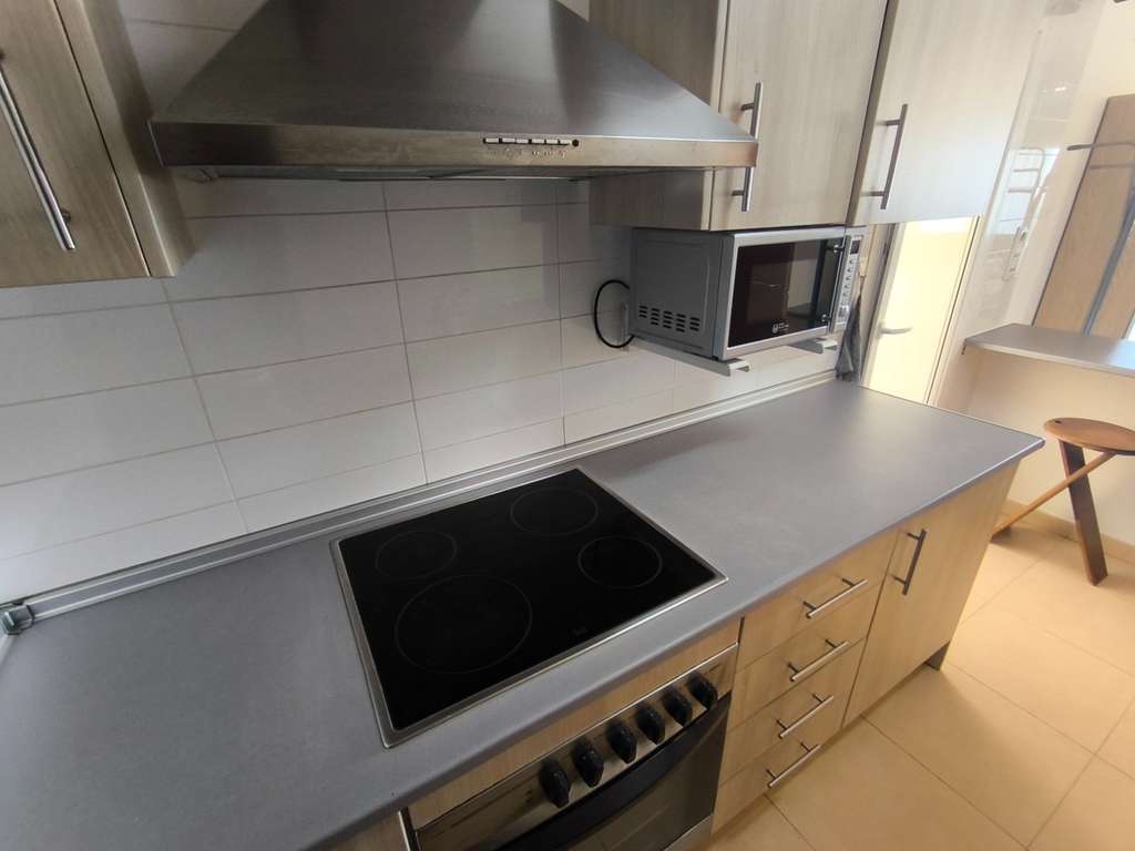 Dispone de cocina independiente con barra de desayuno, práctica y funcional, además de una galería cerrada y acristalada. Ambos dormitorios cuentan con armarios empotrados, y el salón está equipado con aire acondicionado para mayor confort.