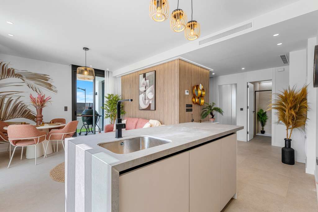 ¿Busca una propiedad única donde la comodidad, el lujo y un auténtico ambiente vacacional se fusionen a la perfección? Entonces, este exclusivo apartamento en planta baja es justo lo que busca. Esta residencia, a estrenar y nunca antes habitada, forma parte de una prestigiosa y cuidada urbanización en torno a una impresionante laguna turquesa, un entorno único e idílico que rara vez se encuentra en España. Esta es una oportunidad única para adquirir una vivienda contemporánea llave en mano en una de las zonas más codiciadas de la Costa Blanca. La distribución ha sido cuidadosamente diseñada para ofrecer el máximo confort: tres amplios dormitorios, dos baños completos, un luminoso y abierto salón con cocina moderna y una gran terraza privada con piscina privada. Todo está pensado para ofrecer la mejor experiencia de vida, integrando a la perfección la vida interior y exterior. Con acabados de la más alta calidad, el apartamento se caracteriza por la atención al detalle y materiales duraderos y de bajo mantenimiento, como el césped artificial en la terraza. La cocina está totalmente equipada con electrodomésticos modernos y el sistema de aire acondicionado integrado garantiza un clima interior agradable durante todo el año. Gracias a su ubicación en planta baja y acceso directo al jardín y a la piscina, podrá disfrutar de su propio paraíso privado a cualquier hora del día. La ubicación es simplemente inmejorable. La encantadora laguna está a un corto paseo, ofreciendo oportunidades para nadar, tomar el sol o relajarse en un entorno verdaderamente sereno. Una variedad de instalaciones deportivas y de ocio también se encuentra cerca, lo que hace que esta propiedad no solo sea perfecta para uso personal, sino también muy atractiva como inversión de alquiler. Hermosas playas, reconocidos campos de golf y vibrantes pueblos costeros están a un corto trayecto en coche. Ya sea que busque una segunda residencia, una inversión sólida o una residencia permanente bajo el sol, este apartamento realmente lo tiene todo. Déjese encantar por esta experiencia de vida única en un entorno exclusivo y armonioso, un lugar donde cada día se siente como unas vacaciones.