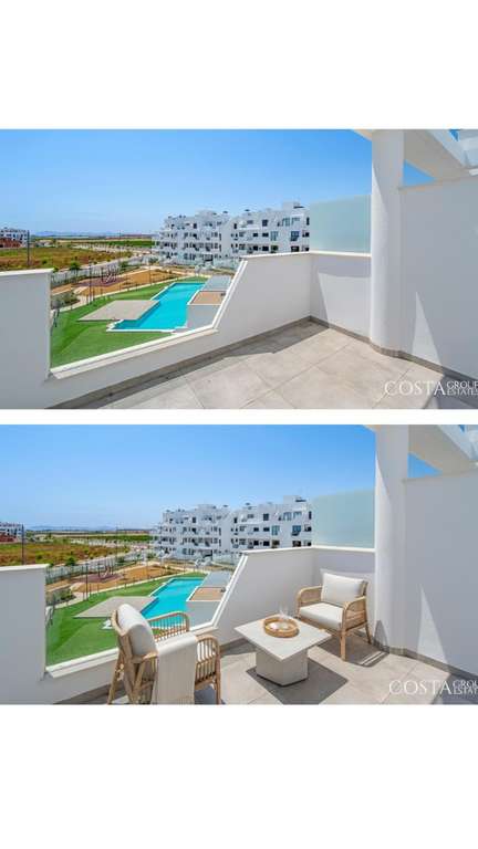 Descubra este moderno apartamento esquinero de 2 dormitorios y 2 baños en el prestigioso Santa Rosalía Lake & Life Resort, una exclusiva comunidad en pleno crecimiento, ubicada entre la costa y los campos de golf de la Región de Murcia. El apartamento, con orientación suroeste, goza de abundante luz natural y ofrece hermosas vistas al resort y a la piscina. El salón, con una moderna cocina totalmente equipada, se integra a la perfección con la espaciosa terraza privada, el lugar perfecto para relajarse al sol o disfrutar de la puesta de sol. El dormitorio principal cuenta con baño en suite, mientras que el segundo dormitorio conecta con un elegante baño de invitados. Construido con materiales de alta calidad y equipado con aire acondicionado, el apartamento garantiza comodidad durante todo el año. Esta propiedad forma parte de la promoción Levansur Home Five, con un total de 60 apartamentos repartidos en 4 edificios, que incluyen 2 piscinas comunitarias y una piscina climatizada. En el corazón del resort se encuentra un impresionante lago de aguas cristalinas rodeado de clubes de playa, senderos para caminar, deportes acuáticos, restaurantes y zonas de ocio. Santa Rosalía ofrece un estilo de vida único donde la naturaleza, la relajación y el lujo se combinan a la perfección. Ya sea que esté buscando un refugio de vacaciones, una vivienda permanente o una inversión con gran potencial, este apartamento de esquina lo ofrece todo, comodidad, estilo y una ubicación privilegiada en uno de los complejos turísticos más solicitados de la Costa Cálida.