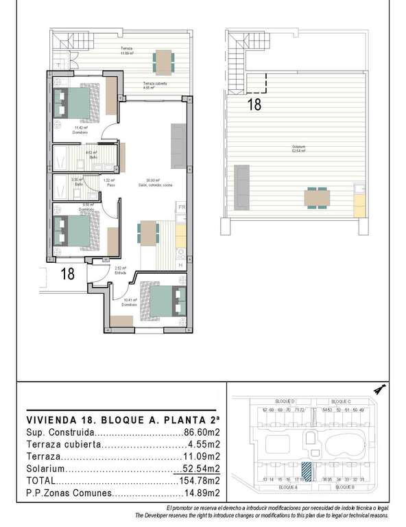 La promoción consta de 72 apartamentos de 2 y 3 dormitorios y 2 baños, uno de ellos en suite, distribuidos en cuatro modernos edificios. También está prevista una segunda fase con bungalows y villas, lo que añadirá aún más valor y atractivo a la zona.