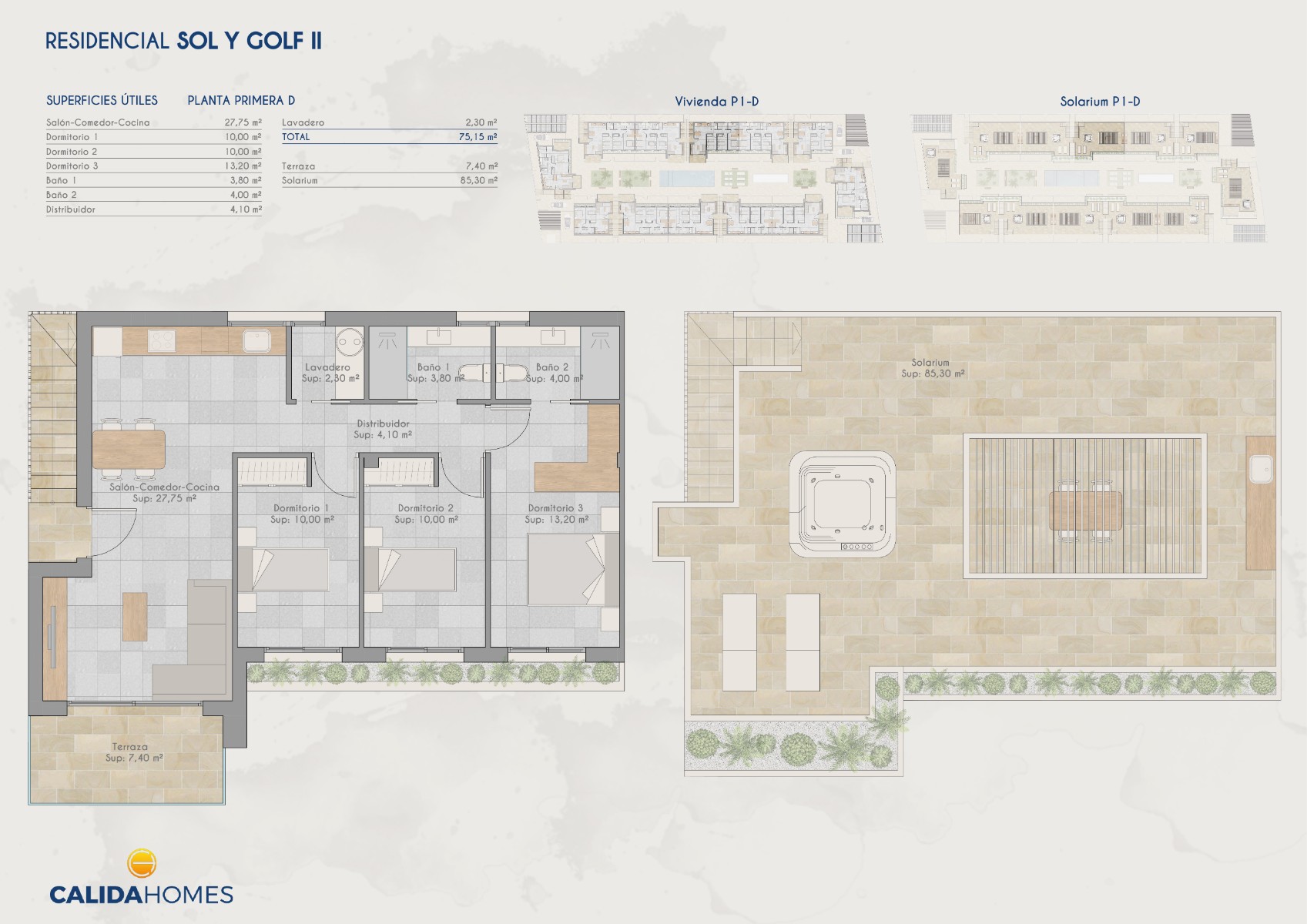 En Cálida Homes no solo somos tu promotora de confianza, somos los constructores de este exclusivo bungalow junto al golf en venta en Torre Pacheco, perteneciente al prestigioso Residencial Sol y Vida – Fase 2. Cada detalle de esta vivienda ha sido cuidadosamente diseñado por nuestro equipo, con los más altos estándares de calidad y eficiencia. Gracias a nuestra amplia experiencia como promotora en la Costa Cálida, podemos ofrecerte un producto final impecable, con acabados modernos, materiales de primera y un estilo funcional pensado para el confort diario. Además, en Cálida Homes nos encargamos de gestionar todos los trámites relacionados con la compra, para que tú solo tengas que preocuparte por disfrutar de tu nuevo hogar. Desde la reserva hasta la entrega de llaves, te acompañamos con un trato personalizado, claro y profesional.
