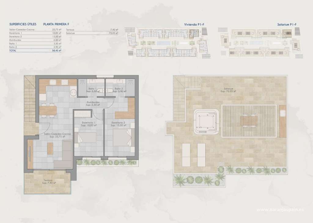 Bungalows modernos con características excepcionalesDescubra un nuevo complejo residencial en Torre-Pacheco, que ofrece 24 elegantes bungalows de 2 y 3 dormitorios. Elija entre viviendas en planta baja con amplias terrazas o unidades en primera planta con terrazas y solariums privados. Cada solarium incluye una pérgola, una zona de barbacoa y una cubierta reforzada, perfecta para instalar un jacuzzi. Todas las viviendas cuentan con una plaza de aparcamiento y aire acondicionado totalmente instalado, lo que garantiza el confort durante todo el año.