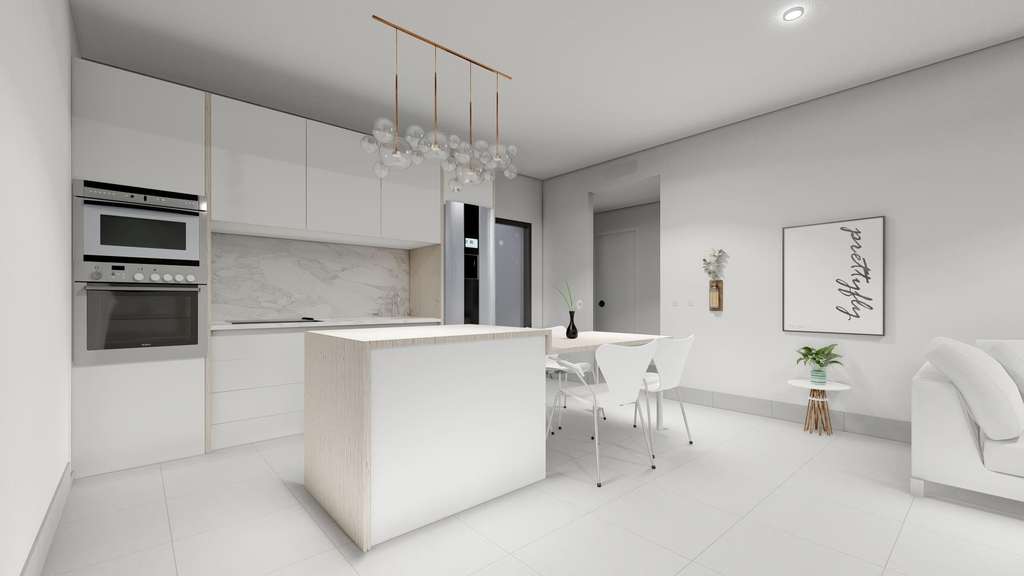 Cocina totalmente equipada con muebles de gran capacidad y electrodomésticos incluidos.