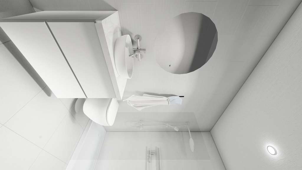 Baños elegantes con muebles suspendidos, espejo con iluminación LED y mamparas en las duchas.