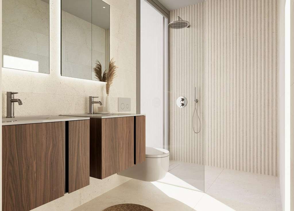 Los interiores son elegantes y funcionales, lo que hace que estas viviendas sean ideales para vivir de forma permanente, para uso vacacional o como inversión. Los dormitorios están equipados con armarios empotrados con cajones, y los baños se entregan totalmente equipados con muebles con espejo y mamparas de ducha.