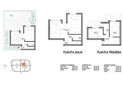 Villas contemporáneas con espacio exterior privadoEstas modernas villas se distribuyen en dos plantas y ofrecen la posibilidad de elegir entre 2 o 3 dormitorios y 2 baños. Cada vivienda cuenta con una cocina y una sala de estar diáfanas, diseñadas para maximizar la luz natural y el confort. La primera planta incluye terrazas abiertas ideales para disfrutar del clima templado, mientras que la planta baja da a un jardín privado con piscina. Hay aparcamiento disponible dentro de cada parcela privada.