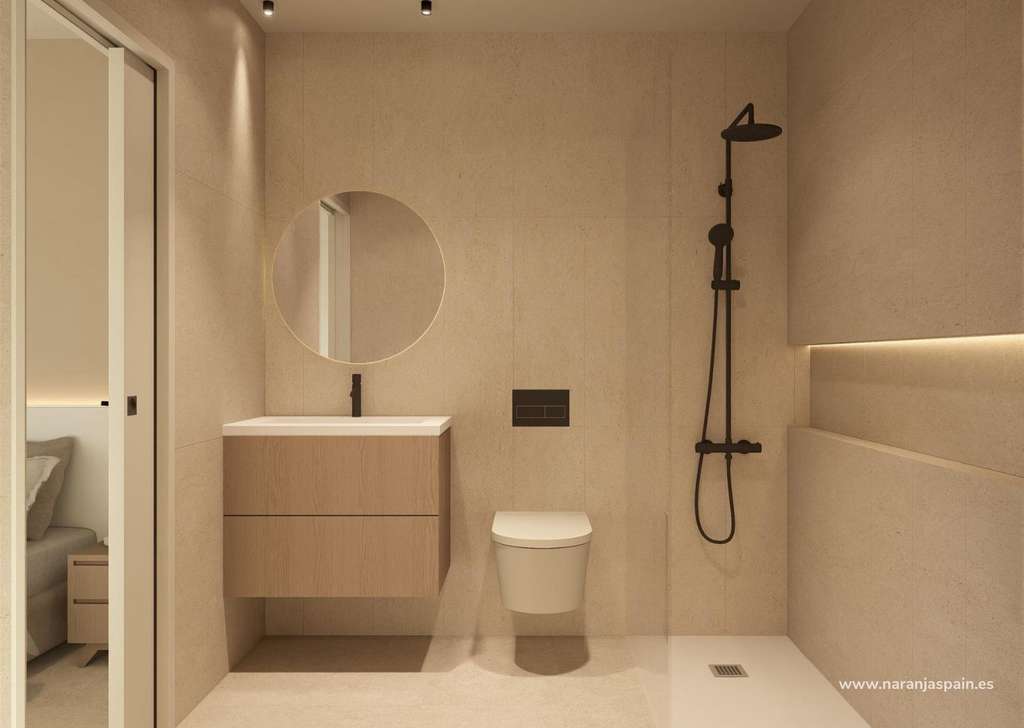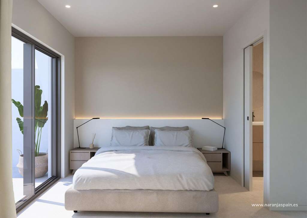 Vivienda de una sola planta con jardín privado y soláriumCada propiedad cuenta con 2 dormitorios y 2 baños, uno de ellos en suite, con una cocina abierta conectada a un luminoso salón. La distribución está cuidadosamente diseñada para maximizar la luz natural y crear una conexión perfecta entre los espacios interiores y exteriores.