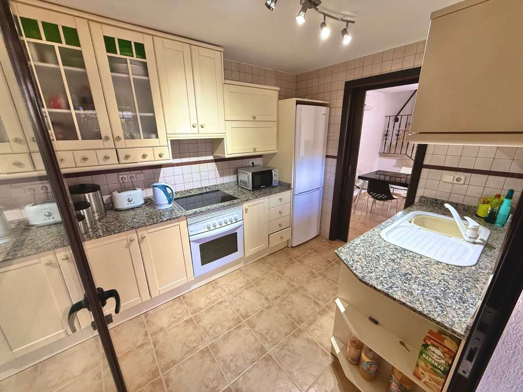 Esta villa cuádruple (construida en 2010) se encuentra en un precioso complejo con piscina y aparcamiento privado en San Cayetano, en excelentes condiciones y ofrece vistas panorámicas al parque cercano. La planta baja consta de salón, cocina, dormitorio y baño con ducha, inodoro y lavabo. El trastero, con caldera nueva, ofrece amplio espacio y es accesible tanto desde la cocina como desde la terraza. Además de un lavadero independiente, esta habitación ofrece amplio espacio para bicicletas, hinchables, tumbonas, etc. El espacioso salón-comedor ofrece amplio espacio para un sofá y un sillón, además de una mesa de comedor con sillas. Una puerta corredera da acceso a la cocina, equipada con horno, vitrocerámica con campana extractora, frigorífico, lavavajillas y microondas. El luminoso dormitorio se utiliza actualmente como sala de lectura con sofá cama y armarios empotrados. El baño de la planta baja cuenta con lavabo, inodoro y ducha.