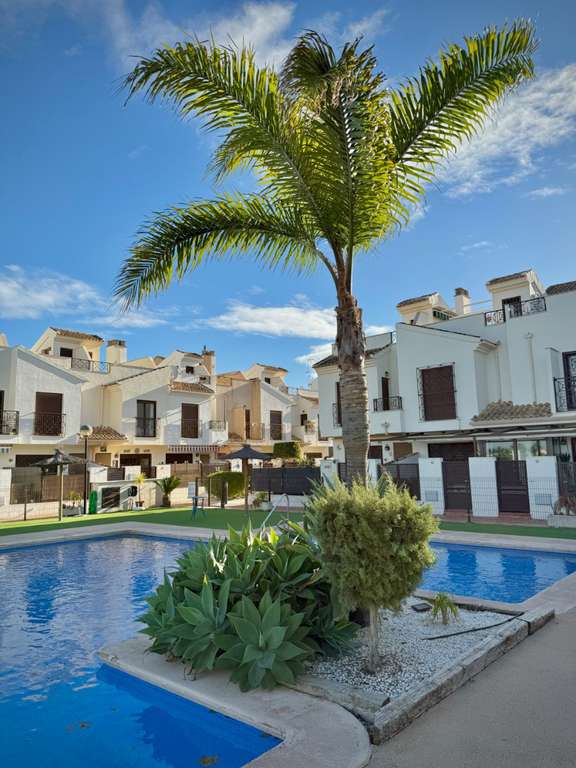 La gran piscina comunitaria (en el complejo) fue renovada hace solo unos años. Las hermosas calles del complejo están bien cuidadas y repletas de flores y árboles. El centro de San Cayetano, con sus tiendas, varios bares y restaurantes, un centro médico y una farmacia, está a solo unos minutos a pie.