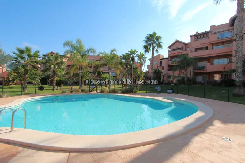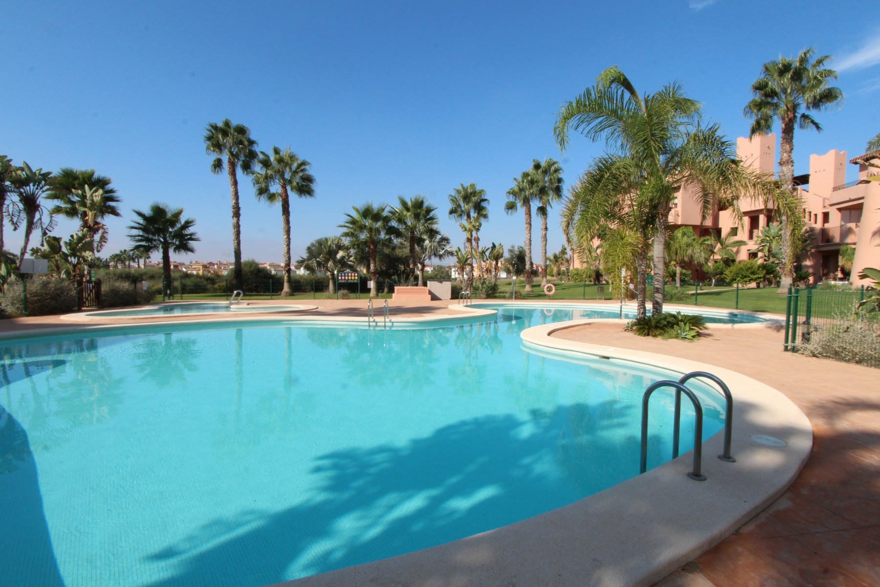 En venta – Acogedor apartamento en planta baja con garaje y gran piscina comunitaria en Mar Menor Golf Resort – España