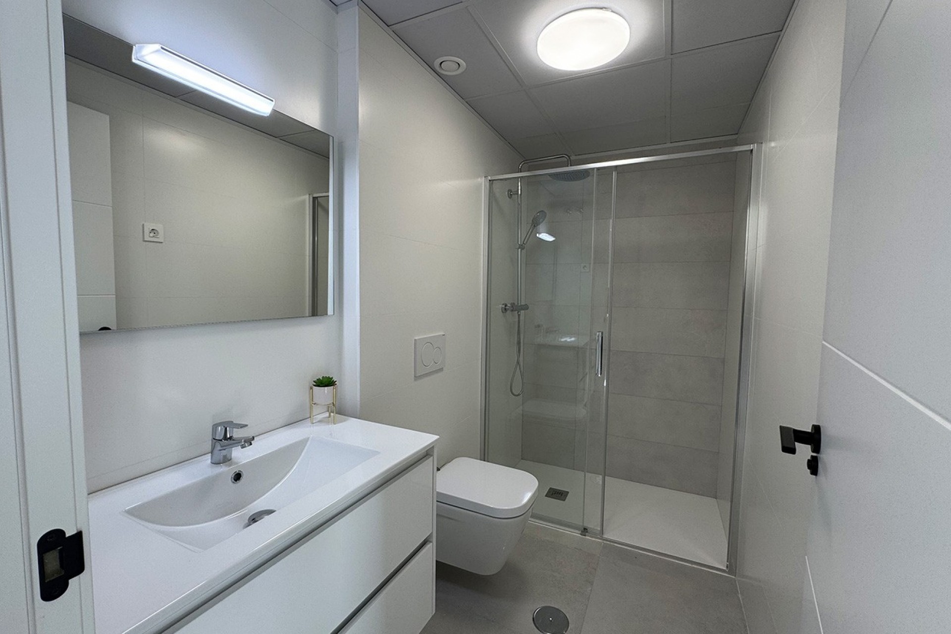 Estructura de hormigón armado con losas y pilares.Fachadas con acabados en mortero monocapa y gres porcelánico en color madera, con aislamiento acústico y térmico.Cubiertas planas transitables con pavimento antideslizante y falso techo de yeso en baños y pasillos.Pavimento de gres porcelánico de alta calidad en interiores y exteriores, con pintura plástica lisa en paredes y techos.Carpintería exterior de PVC con persianas y carpintería interior lacada en blanco con armarios empotrados.Cocina equipada con muebles de alta capacidad, encimera de Silestone y electrodomésticos incluidos.Sanitarios de marca Roca o similar, con griferías monomando y duchas efecto lluvia.Preinstalación de aire acondicionado, bomba de calor para agua caliente y preinstalación para toalleros eléctricos.Instalación eléctrica y de telecomunicaciones según normativa, con iluminación LED en interiores y exteriores.Piscina privada, cocina de verano en el solárium, garaje descubierto y placa solar fotovoltaica de 1,5 kW.