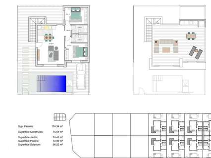 Complejo de lujo de nueva construcción de villas pareadas de una o dos plantas en Roldán. Tiene la opción de villas de 2 dormitorios, 2 baños construidas en una planta con solarium o de 3 dormitorios, 3 baños construidas en dos plantas con gran terraza.