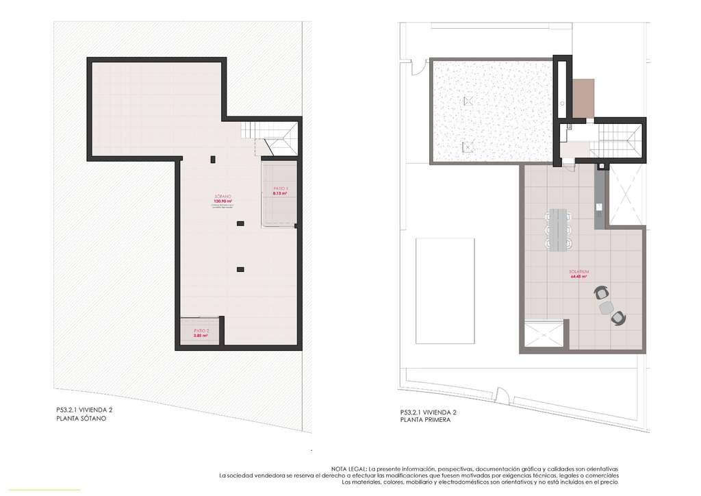 Las villas se distribuyen en 2 plantas y disponen de 3 dormitorios, 2 baños y un aseo y están diseñadas con un estilo contemporáneo y de concepto abierto, que consta de una cocina totalmente equipada y salón-comedor, armarios empotrados, jardín privado con la piscina y plaza de aparcamiento fuera de la carretera, solarium privado.