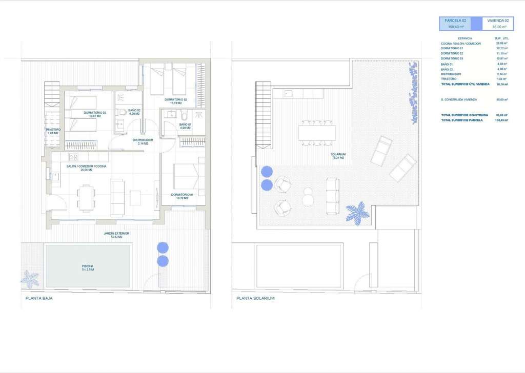 Villas modernas construidas en una sola planta, dispone de 2 o 3 dormitorios, 2 baños, cocina americana con el salón, armarios empotrados, solarium privado.