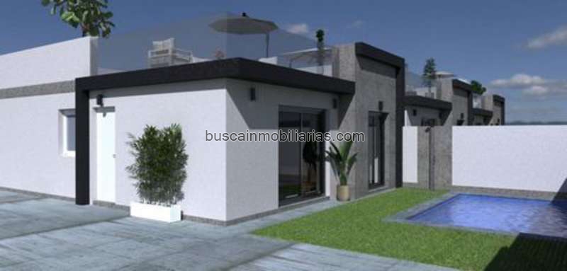 Villas de lujo de una sola planta con piscina privada en Balsicas, Murcia Exclusiva promoción de obra nueva Descubra un exclusivo complejo de 5 villas independientes en Balsicas, cada una diseñada en una sola planta y con piscina privada, amplias terrazas y un espectacular solárium en la azotea. Estas viviendas contemporáneas ofrecen 3 dormitorios y 2 baños, combinando comodidad, privacidad y estilo moderno en una de las zonas más tranquilas y bien comunicadas de Murcia. Diseño moderno y características de alta calidad Estas villas destacan por su distribución diáfana, en la que la cocina totalmente equipada se integra a la perfección con el luminoso salón-comedor. Todas las propiedades incluyen: Cocina totalmente amueblada con electrodomésticos Baños completos con muebles, espejo y mampara de ducha Piscina privada Plaza de aparcamiento en la parcela Iluminación incluida, excepto lámparas decorativas Preinstalación de aire acondicionado por conductos Cocina de verano en el solárium El diseño de una sola planta garantiza el máximo confort, mientras que el amplio solárium permite disfrutar del sol durante todo el año. Una ubicación tranquila y bien comunicada Balsicas es conocida por su ambiente encantador, rodeada de naturaleza, campos de golf y amplias zonas verdes. Es un entorno ideal para aquellos que disfrutan de la vida al aire libre, la tranquilidad y el cálido clima mediterráneo. La localidad ofrece todos los servicios esenciales, restaurantes y opciones de ocio a pocos minutos. Distancias a los principales puntos de interés: Aeropuerto Internacional de Murcia Corvera: aprox. 22 km Aeropuerto de Alicante: aprox. 90 km Campos de golf más cercanos: New Sierra Golf 4 km, La Torre Golf 8 km, Hacienda Riquelme 12 km Playas del Mar Menor: aprox. 18 km Puerto de San Pedro del Pinatar: aprox. 24 km Ideal para vivir o invertir Gracias a su excelente clima, su proximidad al Mar Menor y su fácil acceso a los aeropuertos, Balsicas es un destino atractivo tanto para vivir de forma permanente como para invertir en vacaciones. La zona es especialmente popular entre los amantes del golf y aquellos que buscan un estilo de vida relajado rodeado de naturaleza. Dé el siguiente paso Estas lujosas villas ofrecen todo lo necesario para una cómoda vida mediterránea. Póngase en contacto con nosotros hoy mismo y asegúrese su lugar en esta exclusiva urbanización.