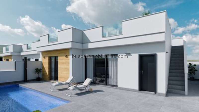 New development of villas with private pools, located in a residential area of Torre Pacheco in the province of Murcia. An ideal location between the city of Murcia and the beaches of the Mar Menor. The project offers semi-detached villas in two different models: a single-storey property with 2 bedrooms, 2 bathrooms, and a 56m2 solarium; or a villa with 3 bedrooms and 3 bathrooms (two of which are en-suite), spread over two floors and with a 35m2 solarium. All models are equipped with a summer kitchen on the solarium, a garden with a private pool, pre-installation for ducted air conditioning, and a paved parking space on the plot. Torre Pacheco is a municipality in the interior of the Murcia region, close to the town of Los Alcázares on the Mar Menor. The area is known for its many windmills and its wide range of golf courses. The town itself offers a wide selection of daily amenities, bars and restaurants, medical centers, and two schools, making it an ideal place to live all year round. Although it is an inland area, the beautiful beaches of the Mar Menor are only a 15-minute drive away. At the Mar Menor, there are many water sports available such as scuba diving, snorkeling, and sailing. Interested? Do not hesitate to contact our office. We are happy to assist you further.